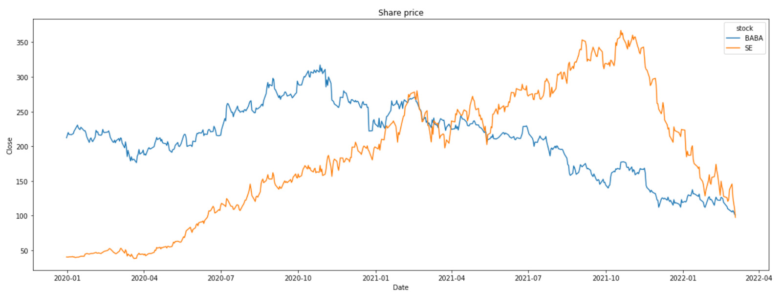 $Sea Ltd(SE)$ has dropped below $Alibaba(BABA)$price. The last time this happened was 13 May 2021.