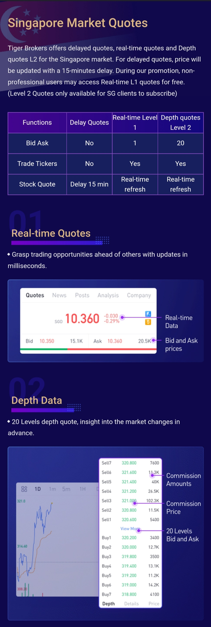 Currently, Level 2 Quotation for Singapore Stock Market is only available for Tiger Brokers (Singapore) clients.