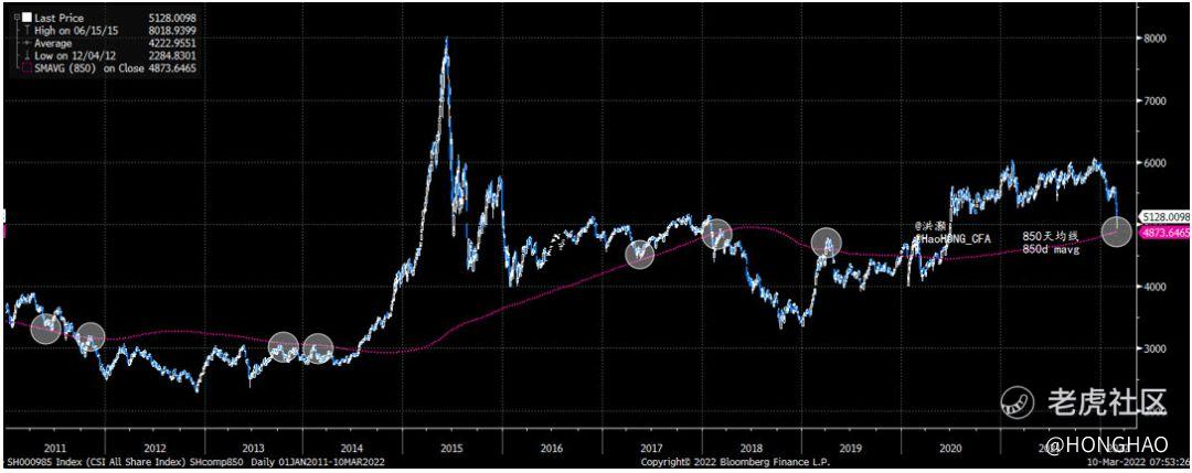 But something else interesting happened during trading yesterday. The SHCOMP plunged to its 850-day moving average, and then reversed course (Figure 1). Since 2016, we have pioneered in quantitative study of China’s economic cycle, and have been applying our economic cycle theory to macro strategy. The calculation period of the 850day moving average is the same wave length of 3.5 years, the timespan of an economic short cycle in China. It is not technical analysis.