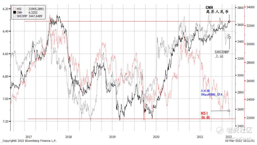 The historic strength in RMB explains the divergence between on/offshore market performances. As the RMB’s strength weakens, the onshore market will no longer get a boost. While we continue to believe that Hong Kong offers deep allocation value at its recent levels (“This Christmas, Hong Kong in Deep Value”, 2021-12-23), not everyone can stomach the potential market upheaval, should the Ukraine War intensify further.