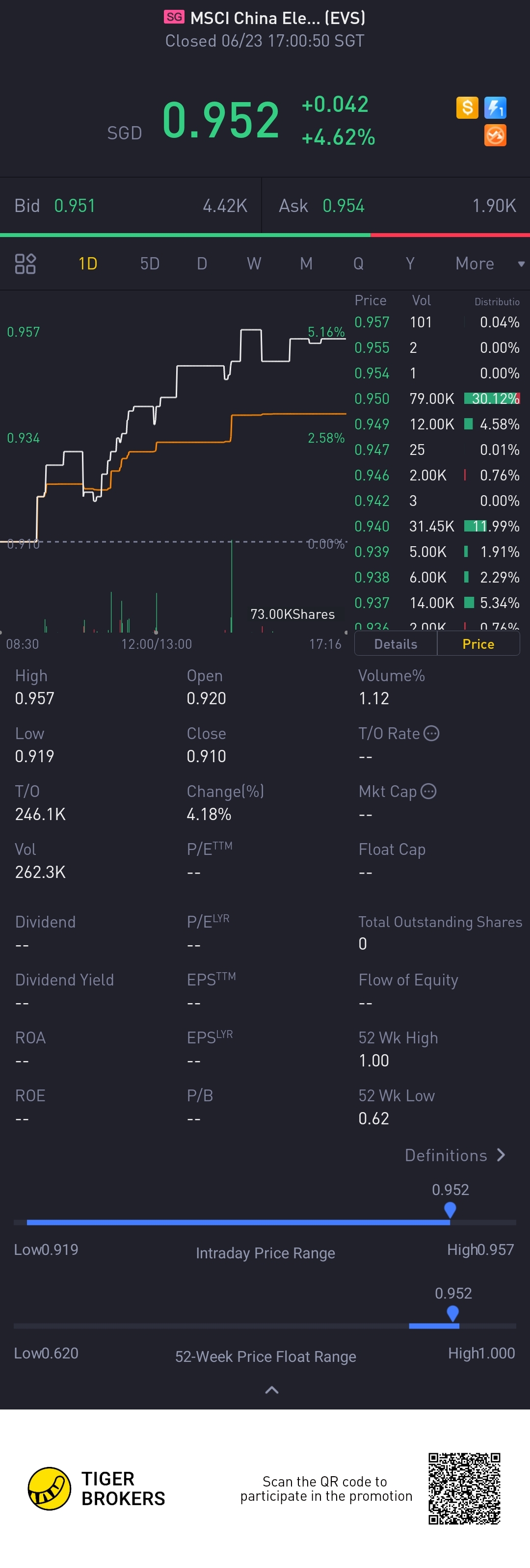 $MSCI China Electric Vehicles and Future Mobility ETF-NikkoAM(EVS.SI)$want to invest in electrical cars and battery-related stocks? Why not buy this ETF to invest in a greener future?