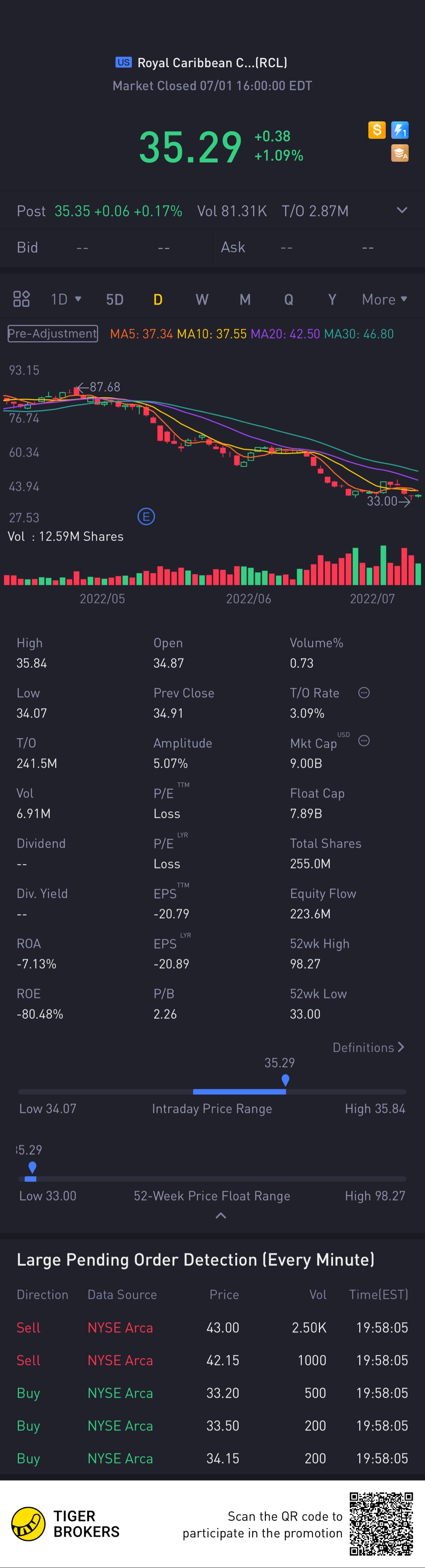 $Royal Caribbean Cruises(RCL)$Since the travel industry is gradually moving towards the new norm after pandemic, it is time to have some attention on travel related stock Like RCL...
