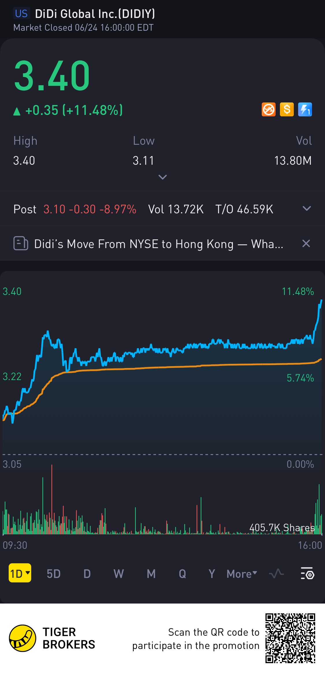 $DiDi Global Inc.(DIDIY)$Wow