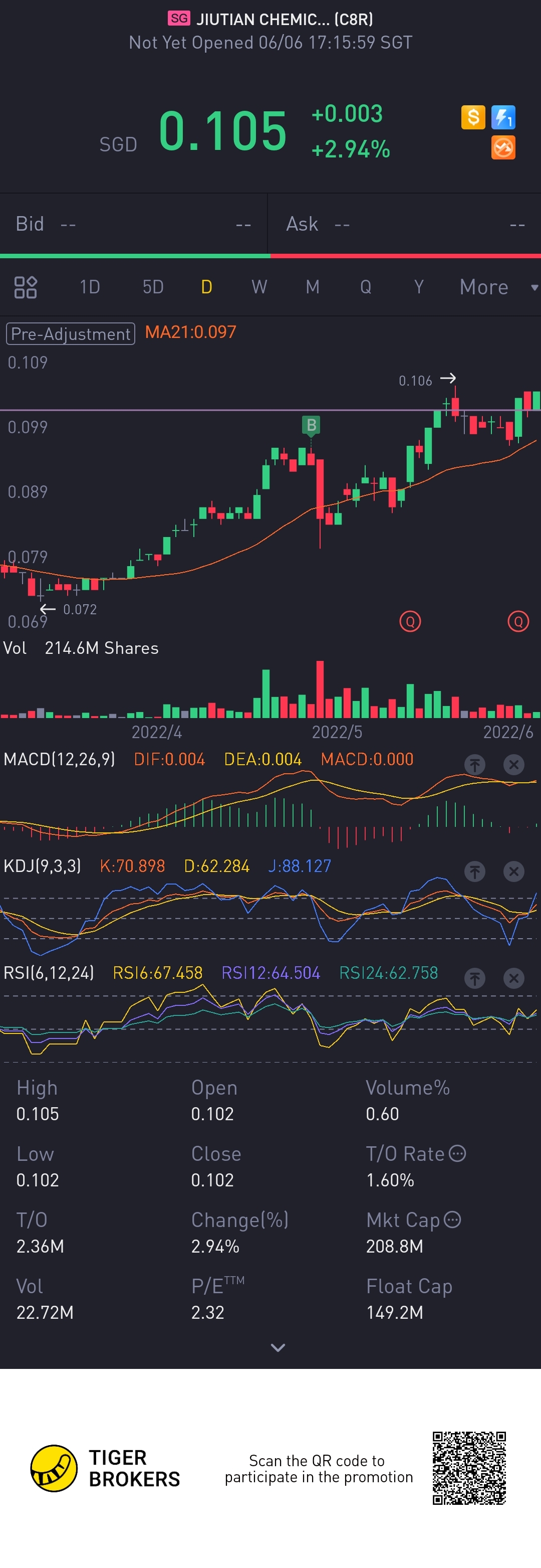 $JIUTIAN CHEMICAL GROUP LIMITED(C8R.SI)$ keep going