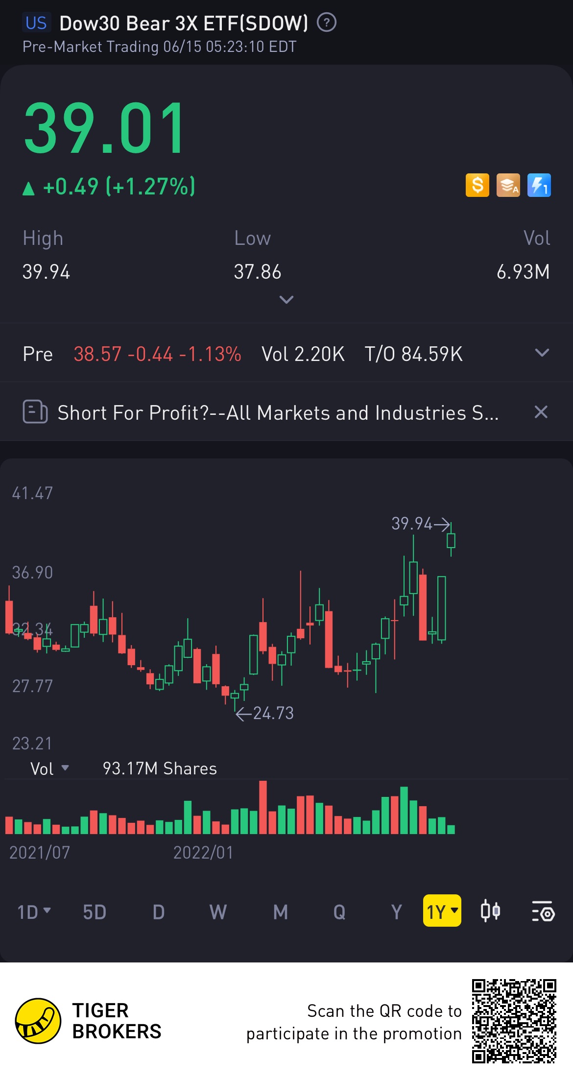 $Dow30 Bear 3X ETF(SDOW)$Don't short theDOW index, go for reverse ETF instead SDOW.