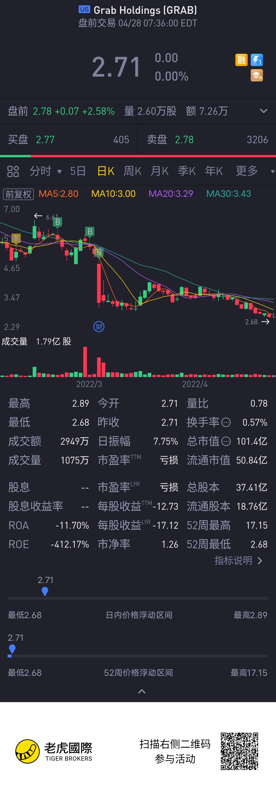$Grab Holdings(GRAB)$any chance to rebounce tonight?