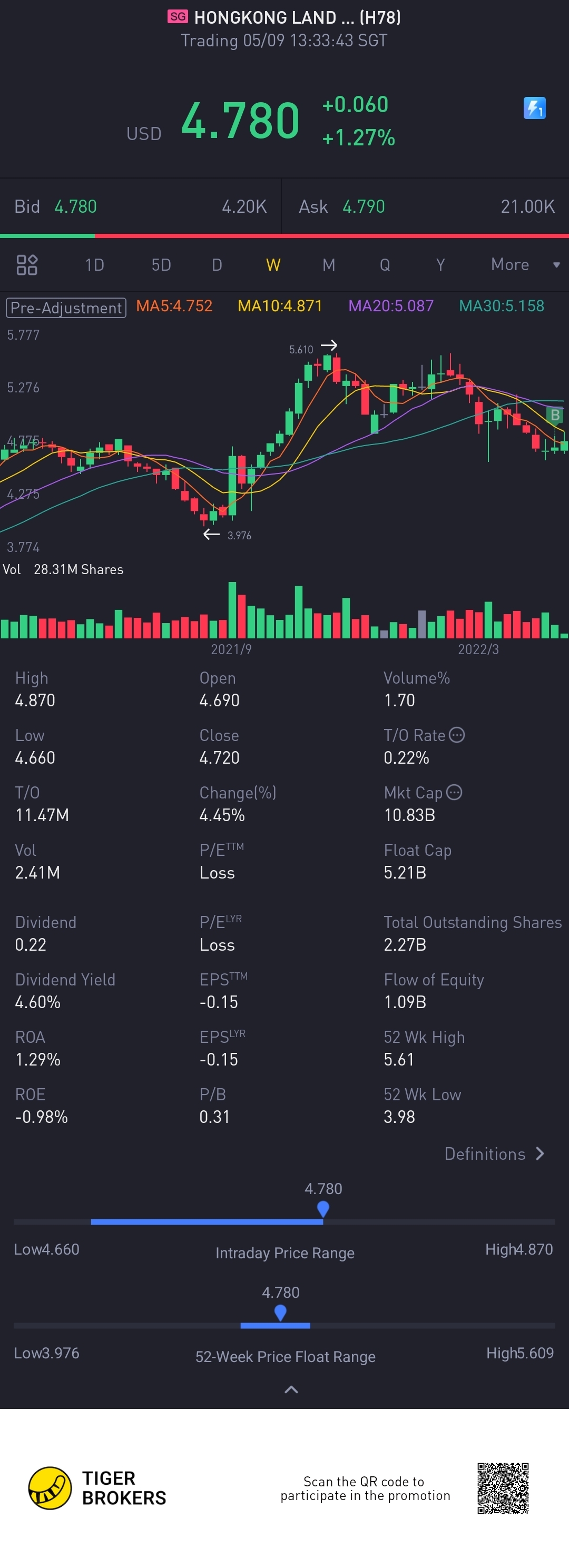 $HONGKONG LAND HOLDINGS LIMITED(H78.SI)$👏