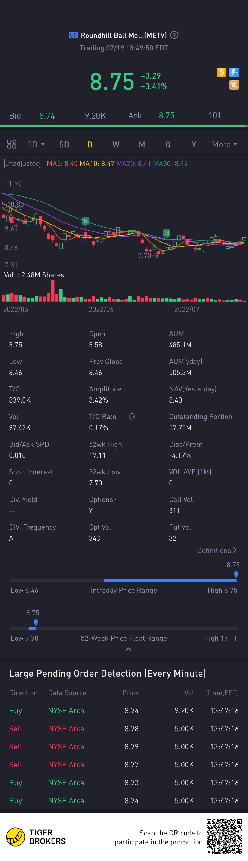 $Roundhill Ball Metaverse ETF(METV)$Nice