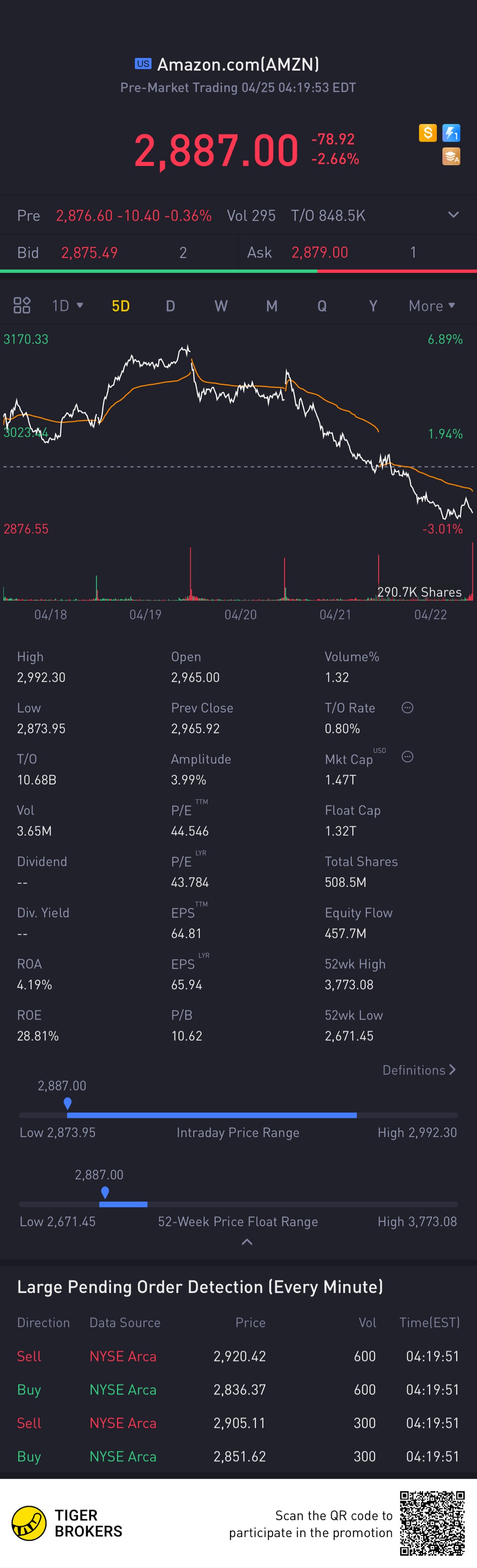 $Amazon.com(AMZN)$Earning report release date is approaching.. up or down?