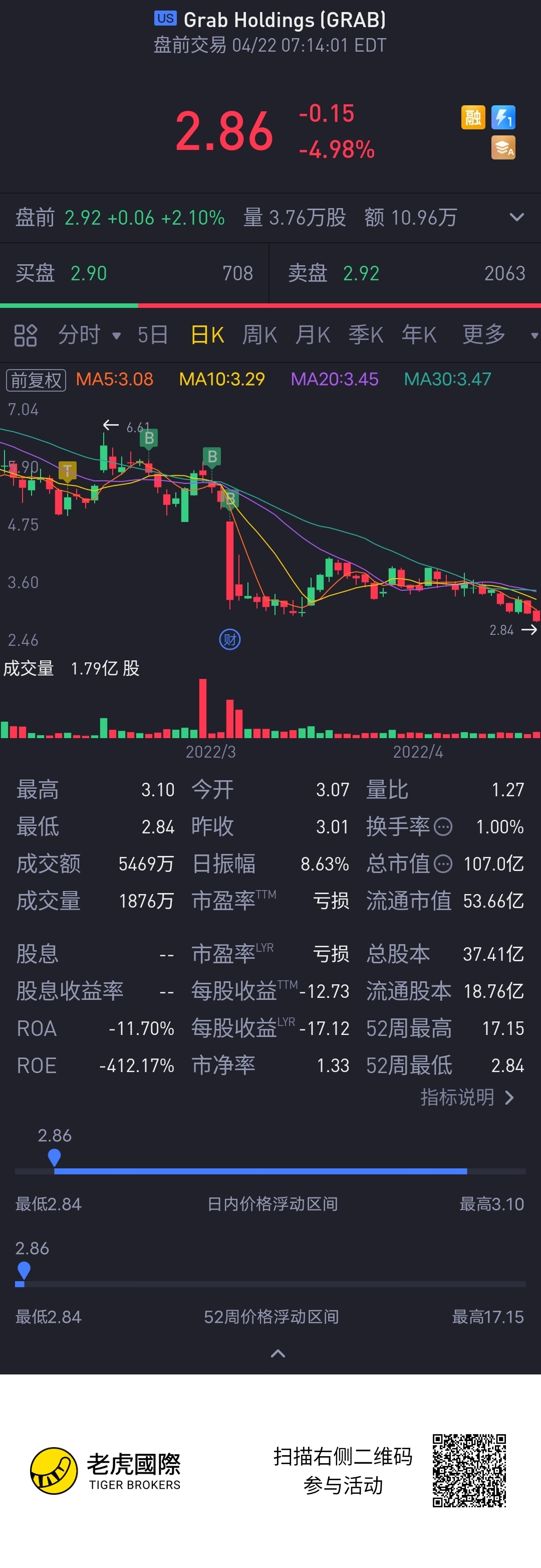 $Grab Holdings(GRAB)$bought at 2.9, hope can rebounce soon