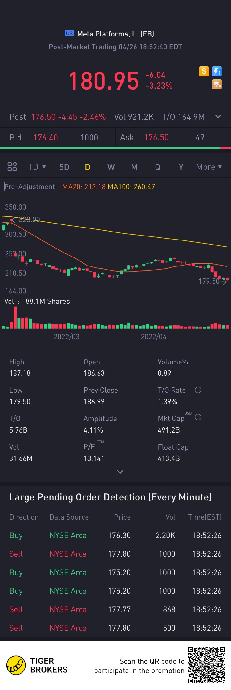 $Meta Platforms, Inc.(FB)$Very good price to buy now. If you are not buying now, what's your reason?