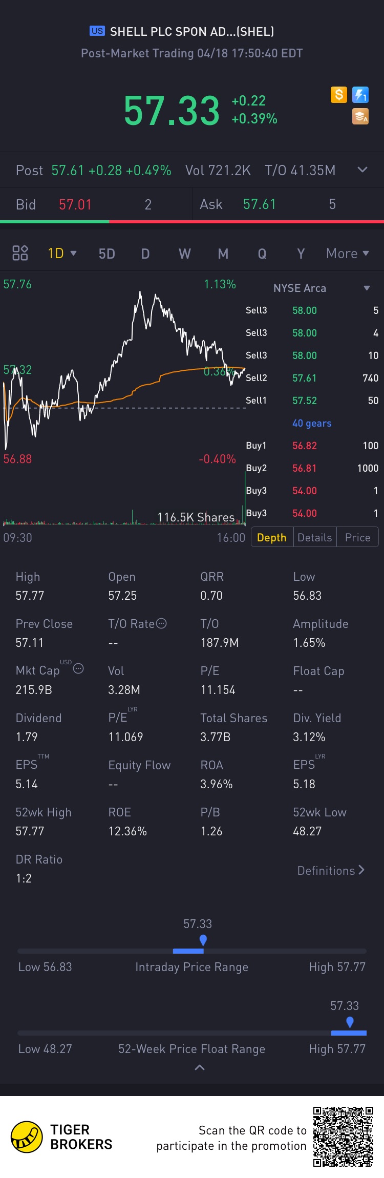 $SHELL PLC SPON ADS EACH REPR 2 ORD SHS(SHEL)$Worth considering