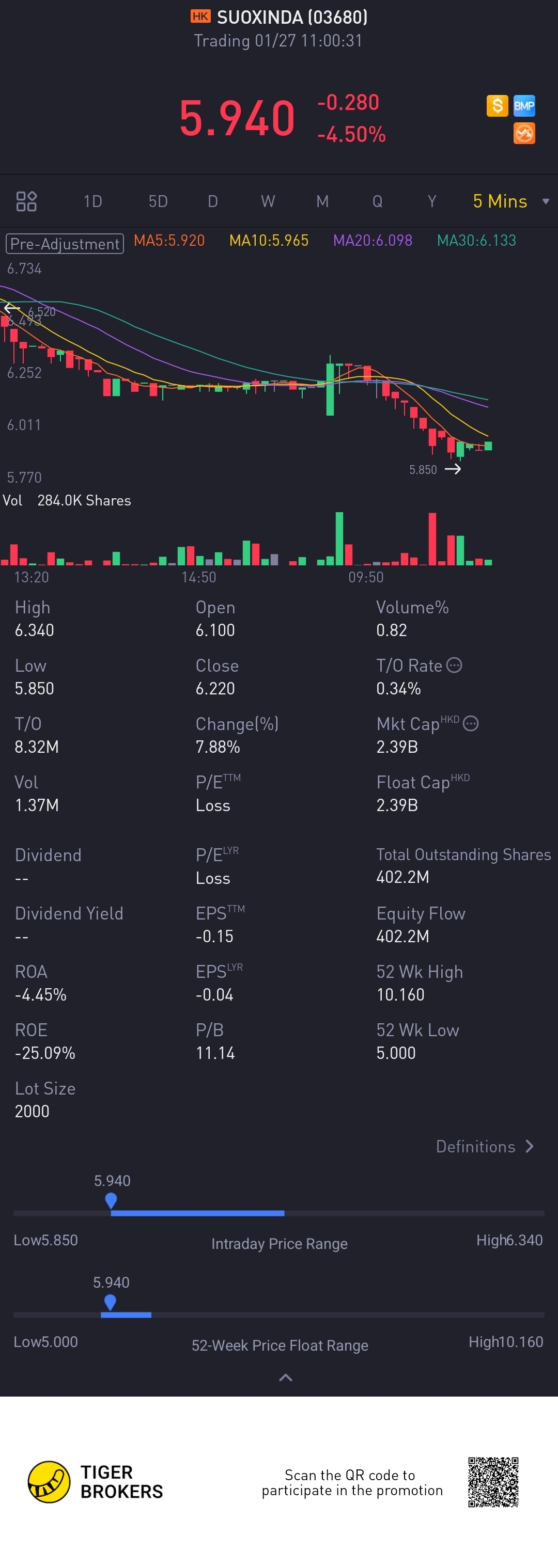 $SUOXINDA(03680)$good morning still go down may be 4.55 is actually price