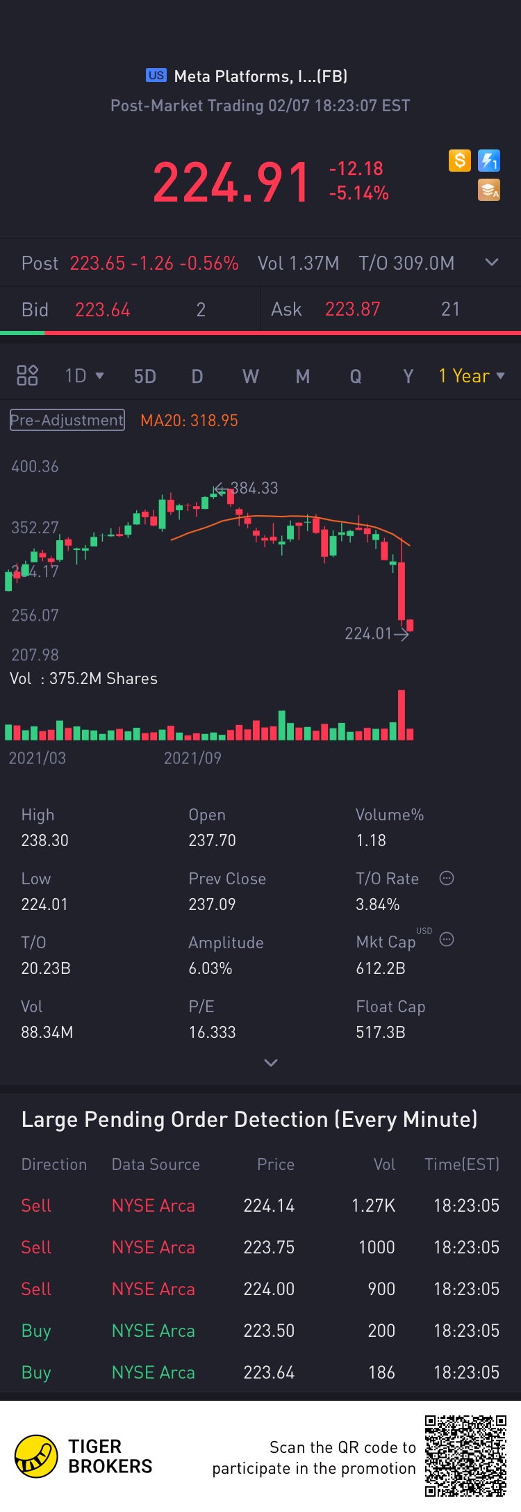 $Meta Platforms, Inc.(FB)$Facebook had plunged down again, which present another opportunity for investors. But hold your horses now, let's wait for the signal to enter.
