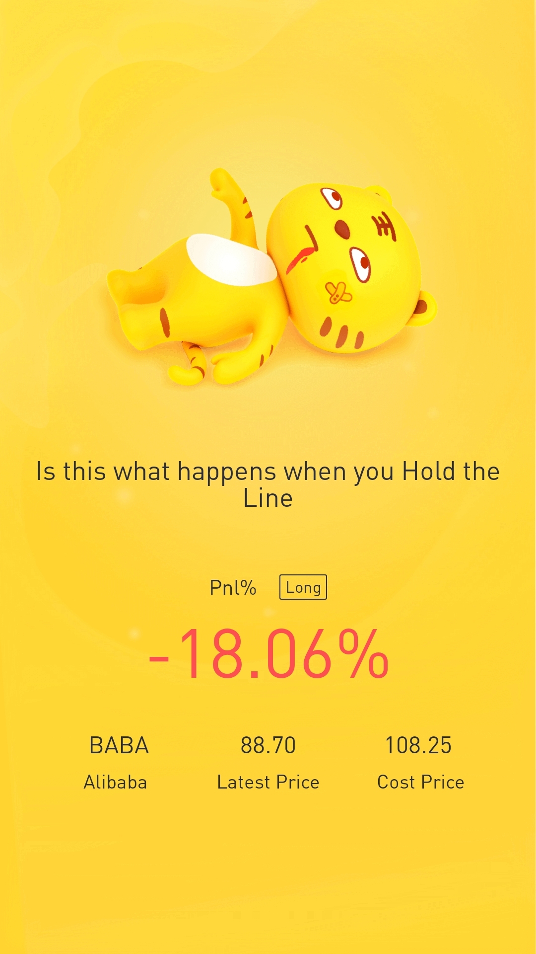 $Alibaba(BABA)$Tiger's mottos are sometimes fitting like ring to the finger! +18% some weeks ago, -18% today.