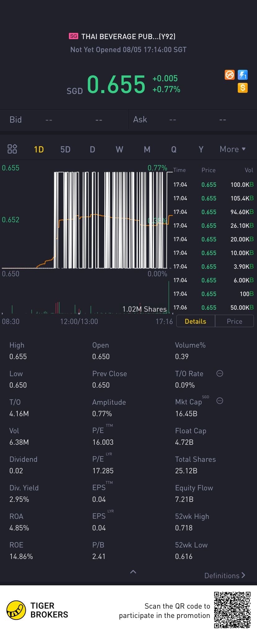 $THAI BEVERAGE PUBLIC CO LTD(Y92.SI)$Start the week with higher hopes. Aiming for more earnings. $GENTING SINGAPORE LIMITED(G13.SI)$will do better this week? But better to hold then sell yet for time being?
