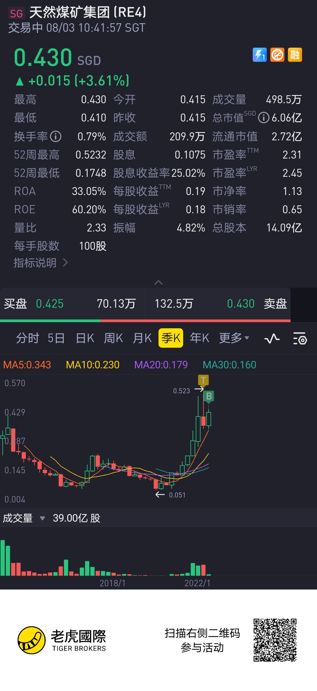 $天然煤矿集团(RE4.SI)$upupup