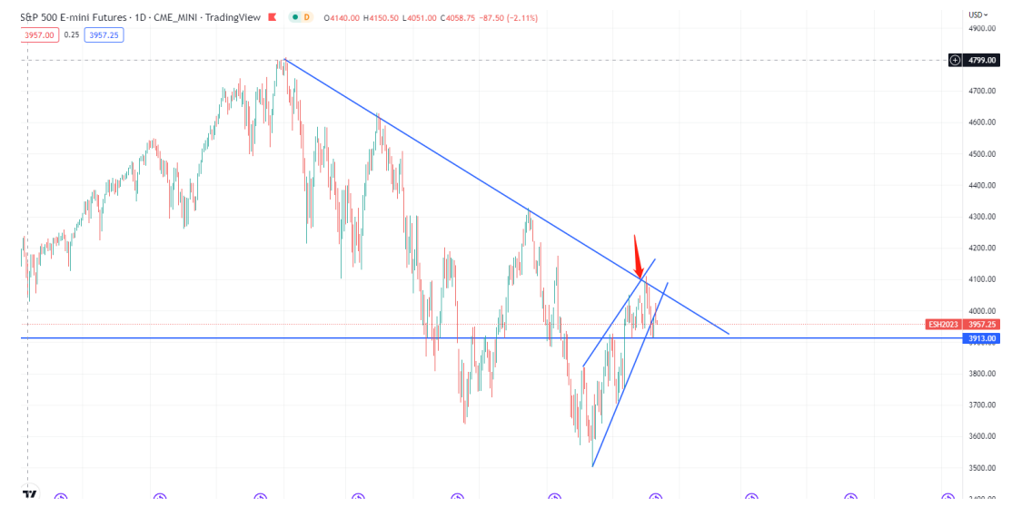 As a matter of fact, Dropping bags for safety was the best option when the S&P500 was above 4100 . Now the question before traders becomes, do you need to turn to short? We believe that there has been a downward signal in the short term, which can be further strengthened after breaking the position; In the medium and long-term performance, it is more likely to be a wide range of shocks, and the market is not ready for the next round of trend market.