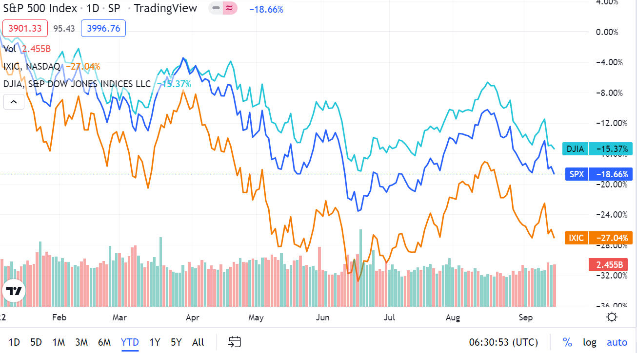 As of market close on Thursday,$S&P 500(.SPX)$ ,$NASDAQ(.IXIC)$ , $DJIA(.DJI)$ 's YTD are -18.66%, -27.04%, -15.37% respectively.