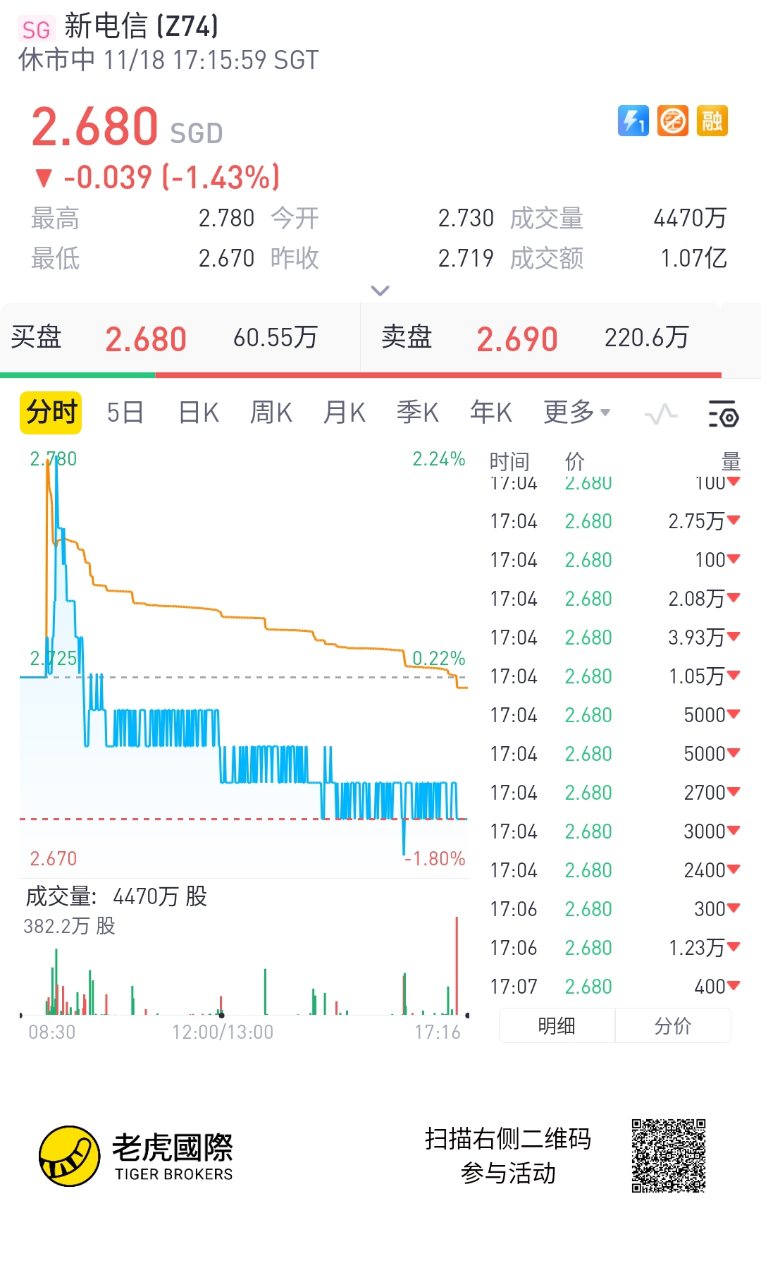 $新电信(Z74.SI)$  $新电信(Z74.SI)$