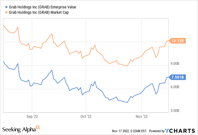 Grab also reiterated its expectation to grow revenues by 45% to 55% y/y in 2023 on a constant currency basis. The company also raised its adjusted EBITDA expectations for the second half of 2022 to a $315 million loss from a $380 million loss previously. This would represent a 40% half-on-half adjusted EBITDA improvement.