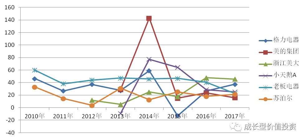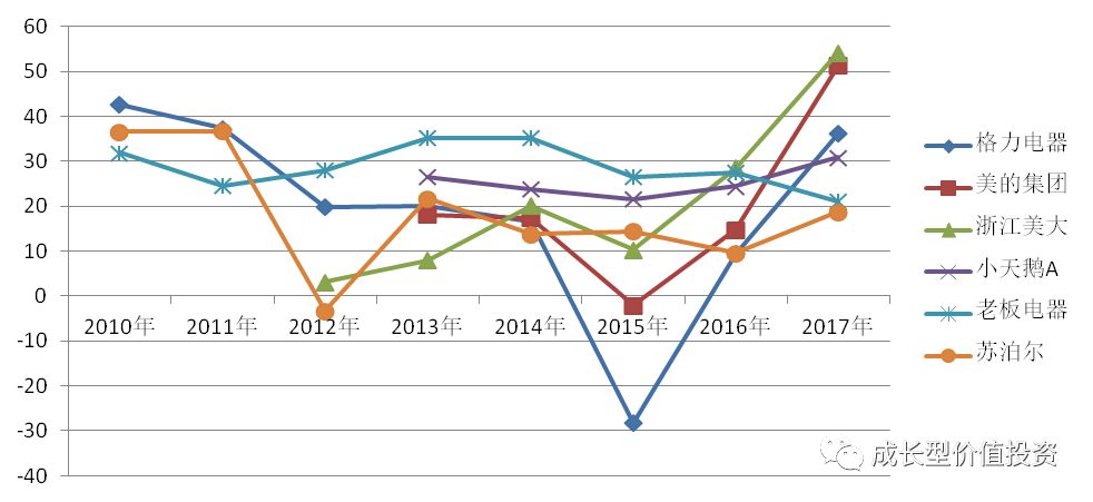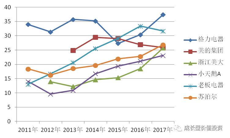 分析:家電行業像其他消費品一樣,並不是一個技術壁壘很高的行業。護城河主要取決於其品牌、具體競爭優勢體現在其同類產品的毛利率高低上。