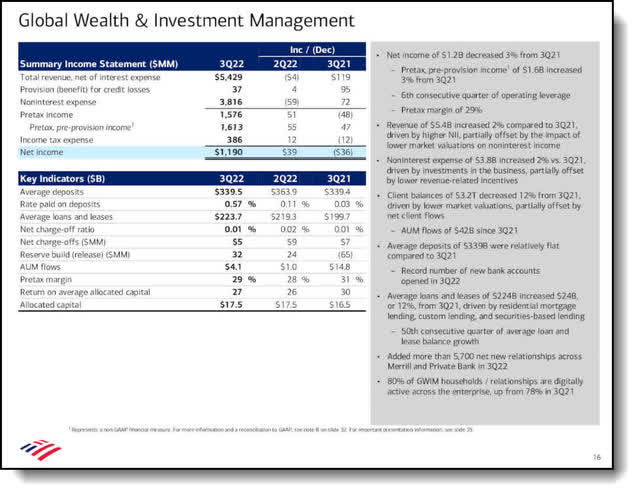 The trading arms of banks tend to rely on market volatility for increased profits. The issue is volatility levels were somewhat subdued for the period. Even so, Bank of America's Wealth & Investment Management division produced strong results due to a strong banking business bolstered by revenue growth from banking products.