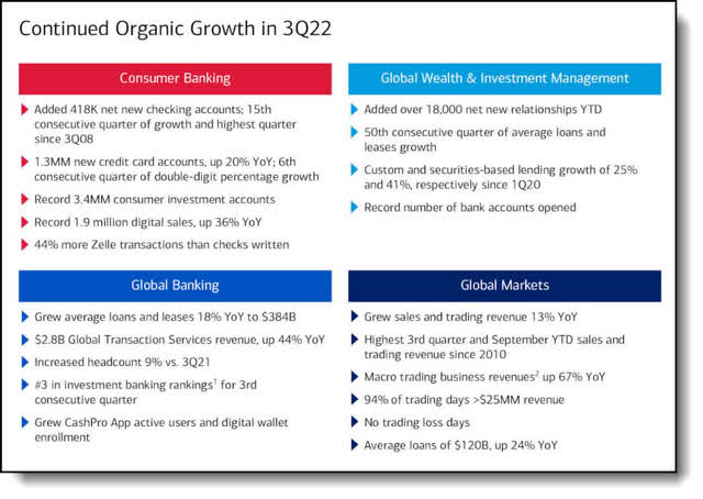 Some of the "nattering nabobs of negativism" have reared their ugly heads and pointed to recessionary risks causing the bank's stock price to plummet, yet, I beg to differ. The increased income from NII should more than offset any consumer banking hit the bank may take. What's more, CEO Moynihan stated he wasn't concerned about a huge decline, and I'll take his word for it over the naysayers, as he has a rep of being a straight shooter. My 12-month price target is $43, implying a 24% capital gain coupled with continued dividend growth. Those are my thoughts on the matter. I look forward to reading yours.