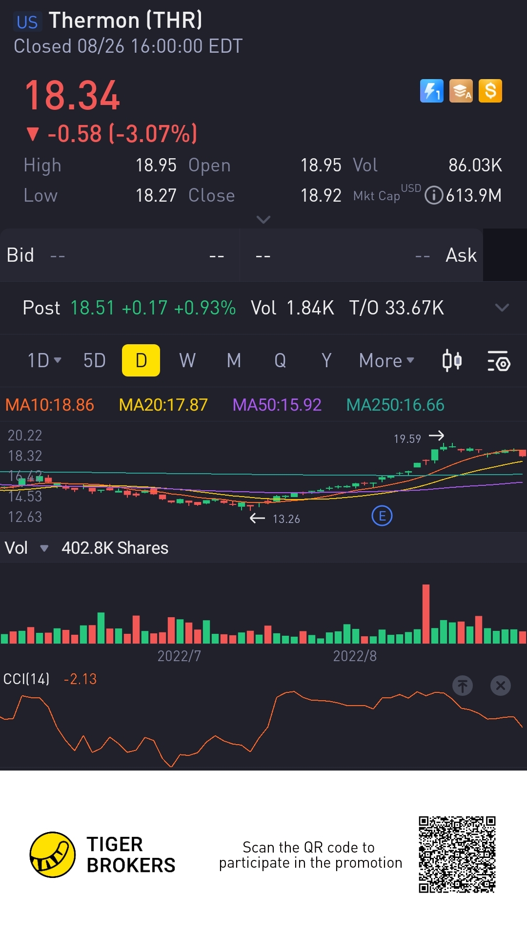 $Thermon(THR)$Uptrend, price above 50day MA. detect trading opportunity when pull back yesterday.