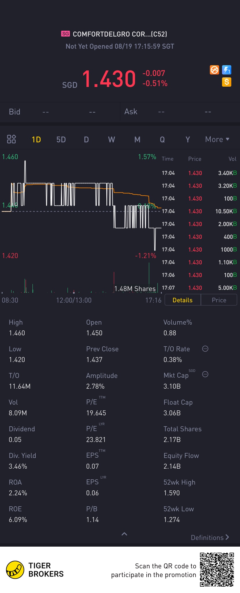 $COMFORTDELGRO CORPORATION LTD(C52.SI)$This week feels more edgy. Looking forward to the result after the dividend pay out. Not sure how the overall outcome will be like. Speculations here and there. We just want good news.