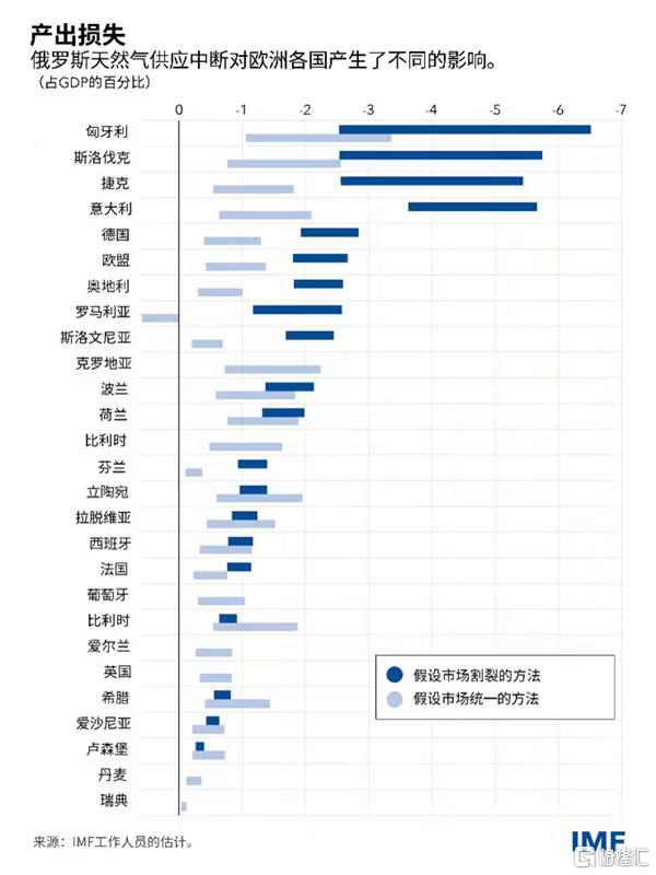 而对于带来的经济影响。IMF表示,若假设市场是一体化的(市场维持如此),则欧盟经济活动可能在2022年上半年萎缩0.2%。