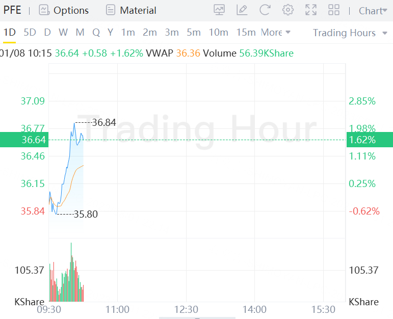 Excluding items, Pfizer reported a profit of 67 cents per share, while analysts had expected 57 cents.