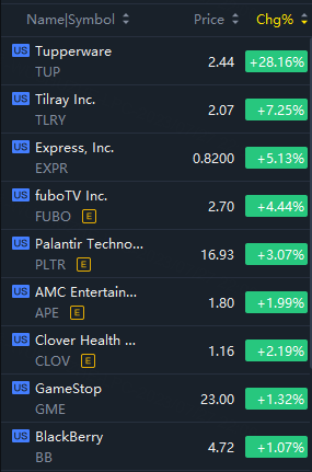 Meme Stocks Cheered up in Morning Trading; Tupperware Surged Over 28% and Jumped Over 260 in 5 Days