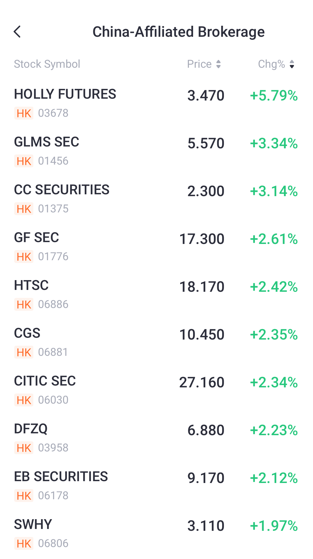 China-Affiliated Brokerage shares jumped in Hong Kong. Holly Futures up 5.8%; GLMS SEC, CC Securities up over 3%; GF SEC, HTSC, CGS, CITIC SEC up over 2%.