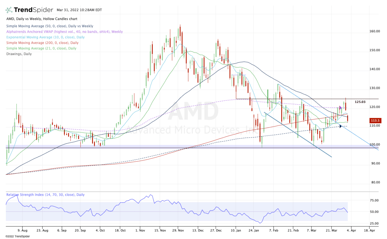 As a natural bull, I hate to say that because it’s been such a painful ride already. But the reality is that unless AMD stock reclaims $117.50, we have to be aware of the potential downside.