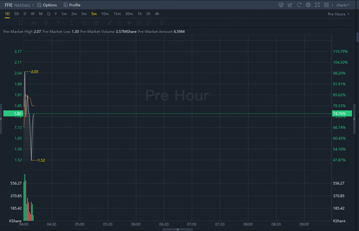 Faraday Future Intelligent Electric (NASDAQ:FFIE) rose 75% in premarket trading.