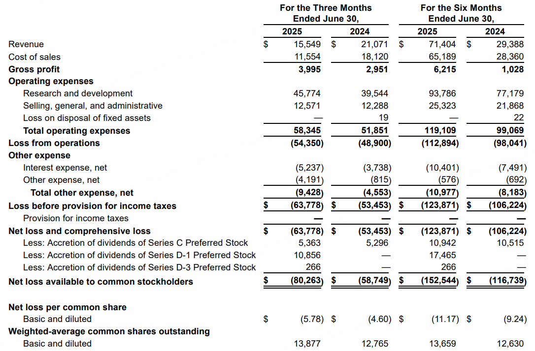 该公司报告第二季度每股亏损5.78美元,大幅低于分析师预期的每股亏损0.46美元。收入为1555万,低于分析师估计的1725万,同比下降26.2%,去年同期为2107万。