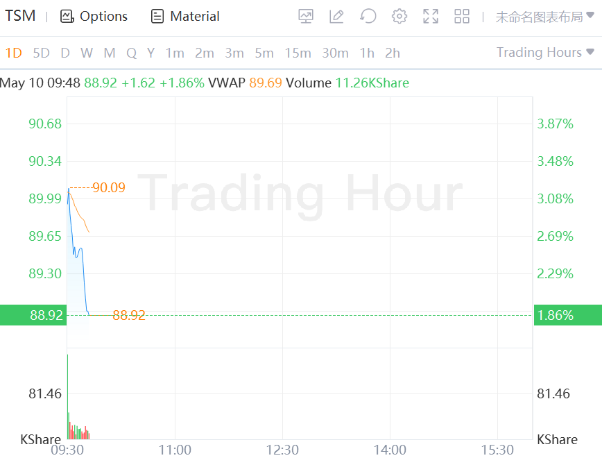 TSMC Stock Jumped 1.86% in Morning Trading. TSMC Revenue for April Was Approximately NT$172.56 Billion, an Increase of 55% YoY.
