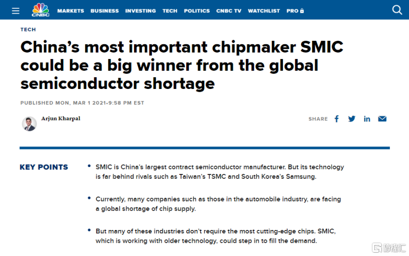 去年12月,美国商务部将中芯国际列入“实体清单”,压制了中芯国际的估值。而这一次“制裁”放宽,可能与目前全球芯片的短缺有关——美帝的“七伤拳”或已让自己都开始顶不顺。