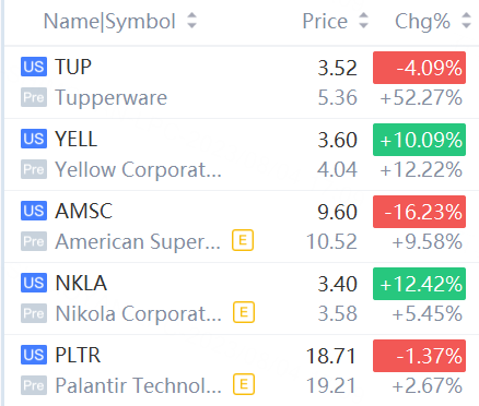Yellow Corp. soars 12.22%; American superconductor rises 9.58%; Nikola rises 5.45%; Palantir rises 2.67%.
