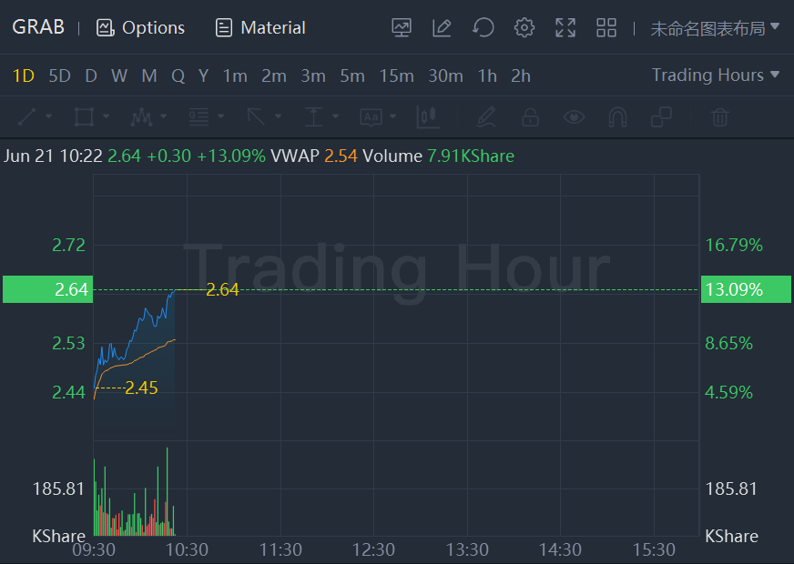 Grab shares surged 13% in morning trading after Grab Holdings initiated with a Buy at Deutsche Bank.