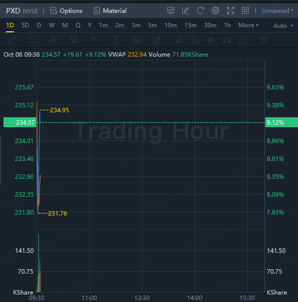 Pioneer Natural Resources Soared Over 9% While Exxon Mobil Fell Nearly 3% in Morning Trading