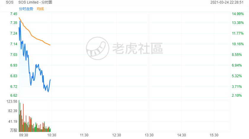 The shares of SOS Limited was once up 14% to $7.42 in Wednesday morning trading after announceing today that it has taken preliminary steps to establish a digital asset exchange.Now the rise eased to 4%