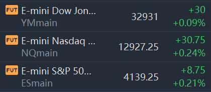 At 08:00 a.m. ET, Dow e-minis were up 30 points, or 0.09%, S&P 500 e-minis were up 8.75 points, or 0.21%, and Nasdaq 100 e-minis were up 30.75 points, or 0.24%.