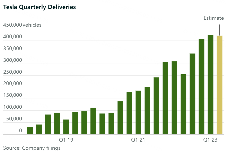 Wall Street was looking for about 420,000 units delivered over the first three months of 2023.