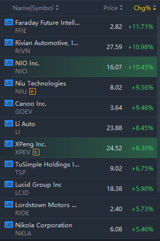 EV stocks jumped in morning trading, with Rivian and Nio rising over 10%.