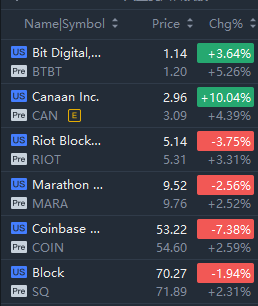Crypto stocks rebounded in premarket trading; Bit Digital, Inc. gained over 5% while Canaan Inc. gained over 4%.