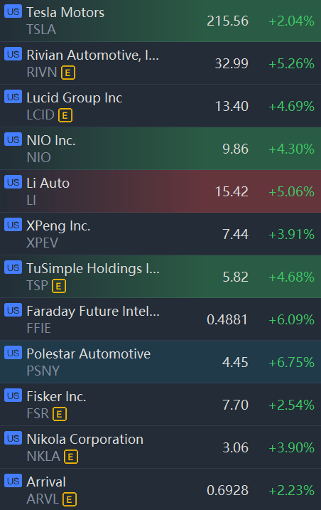 EV stocks rallied in morning trading. Tesla rose 2%; Rivian and Li Auto rose 5%; NIO, Li Auto and Lucid all rose more than 4%.
