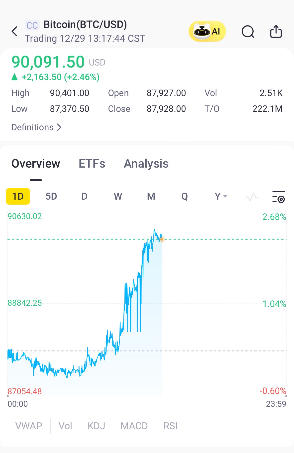 Bitcoin climbed above $90,000 during Asian trading hours, hinting at a potential breakout. This move comes after the digital asset missed out on the Christmas rally that propelled stock markets to record highs.