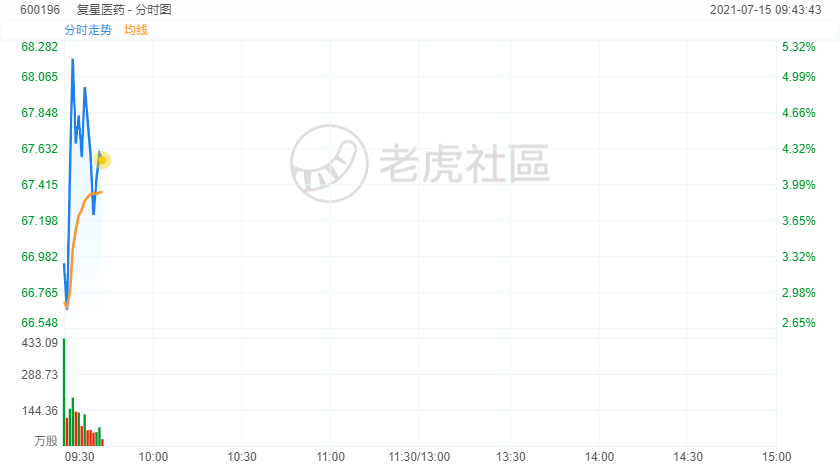 7月15日,复星医药港股盘初大涨涨近7%,报61.3港元;复星医药A股涨逾5%,报68.17元。